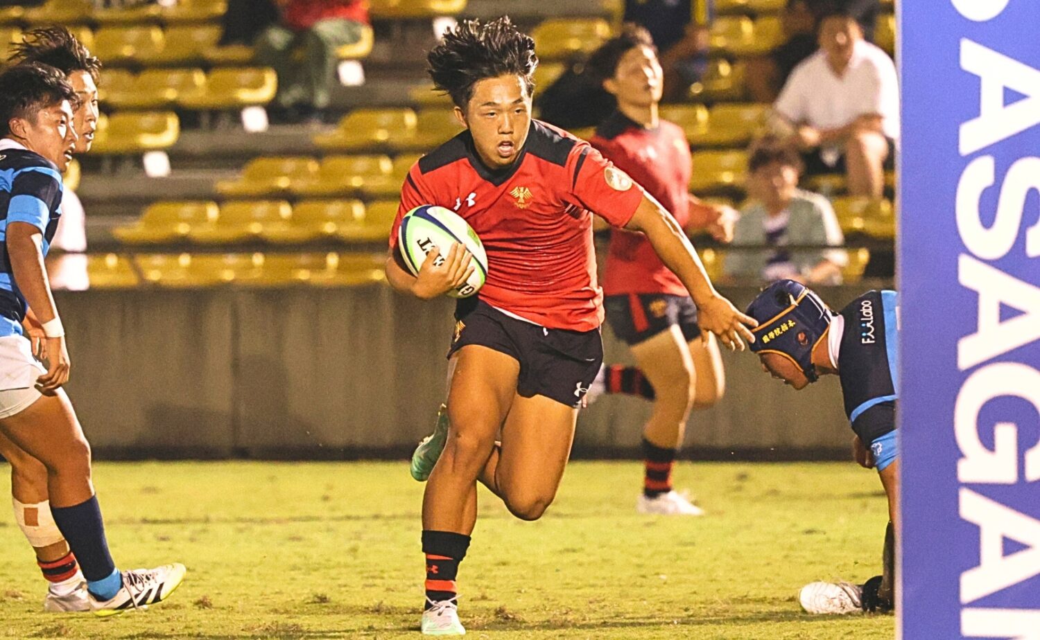 トライを挙げるFB古賀はダイナミックなランが持ち味-斉藤健仁撮影