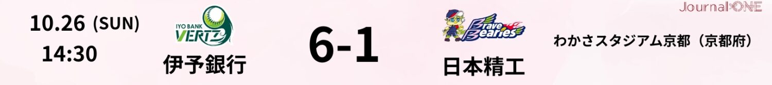 JD.LEAGUEの第14節、2日目の試合結果:豊田織機5-3タカギ北九州、トヨタ14-0ミナモ、伊予銀行6-1日本精工、デンソー4-0東海理化