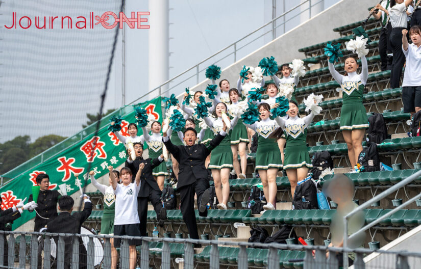 吹奏楽部の演奏と一体になった応援がグラウンドに響き渡る-Journal-ONE撮影