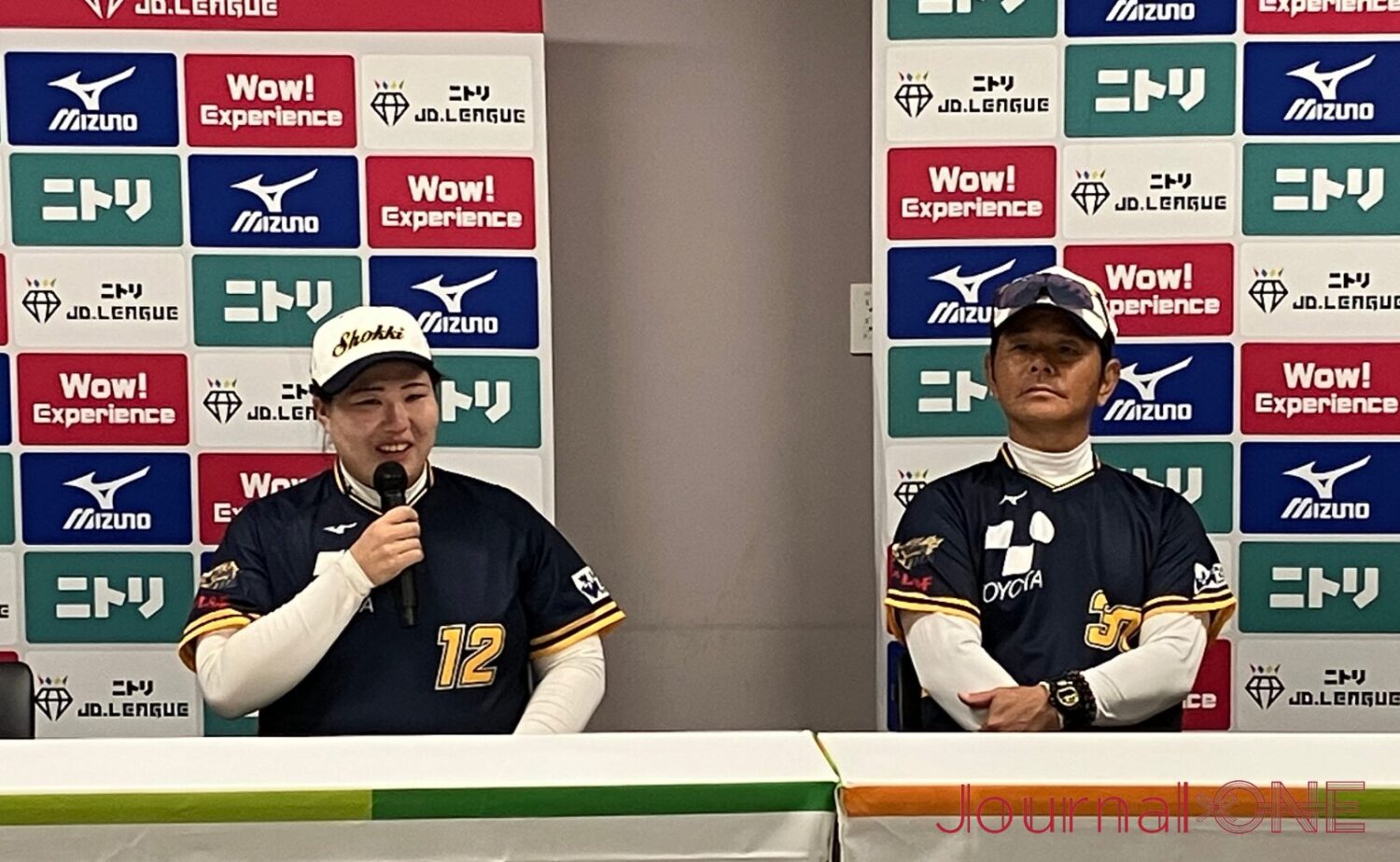 試合後の会見に臨んだ永吉監督と山下投手ーJournal-ONE撮影
