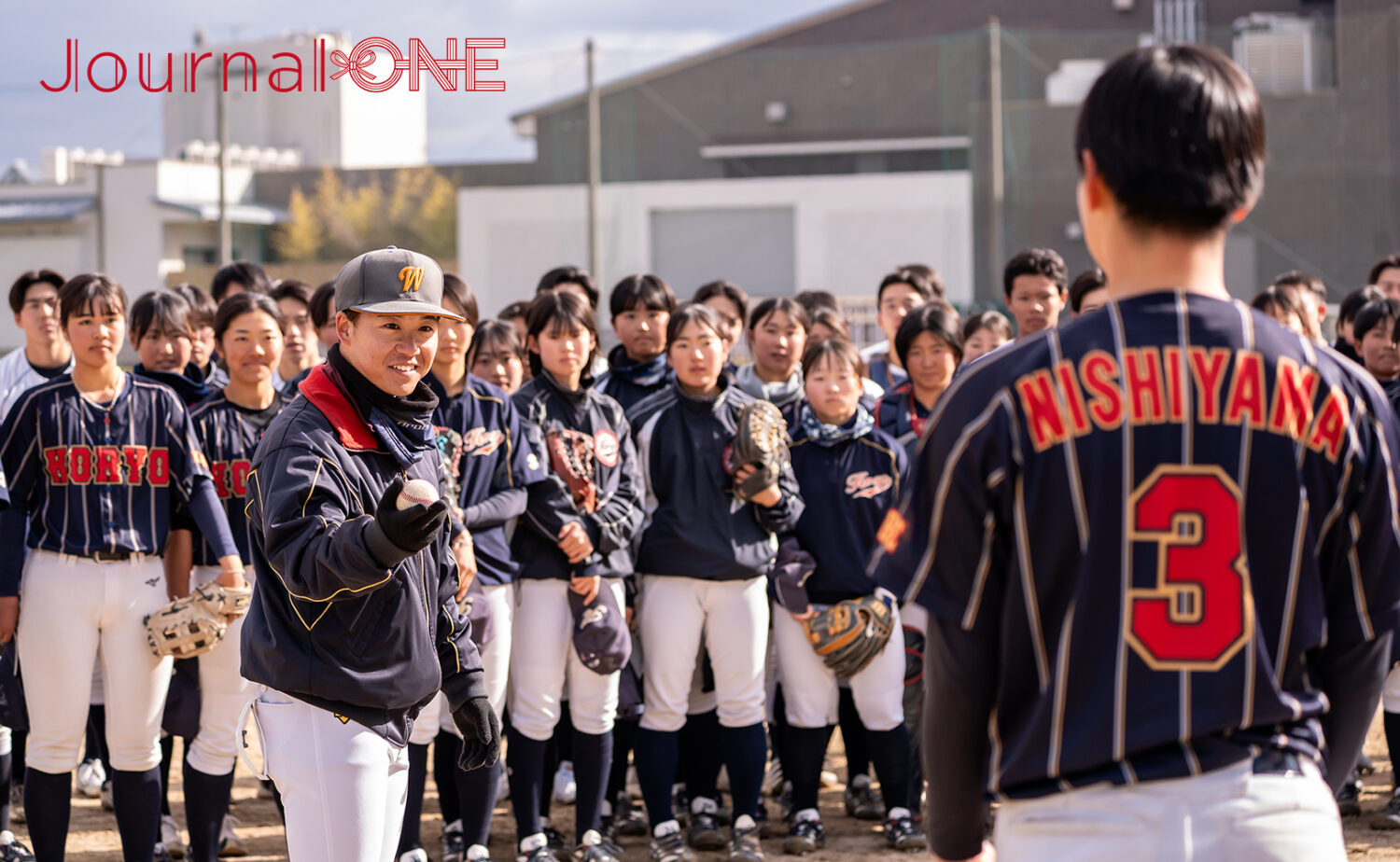 最高気温8度ながらも、温かい日差しに包まれた和歌山県立貴志川高校のグラウンド。そこで、和歌山大学の部員たちがグラウンドを丹念に整備していた。やがて、神戸弘陵高校の部員たちが集合すると、同校OGであるの西上選手が笑顔で後輩たちを出迎えた。