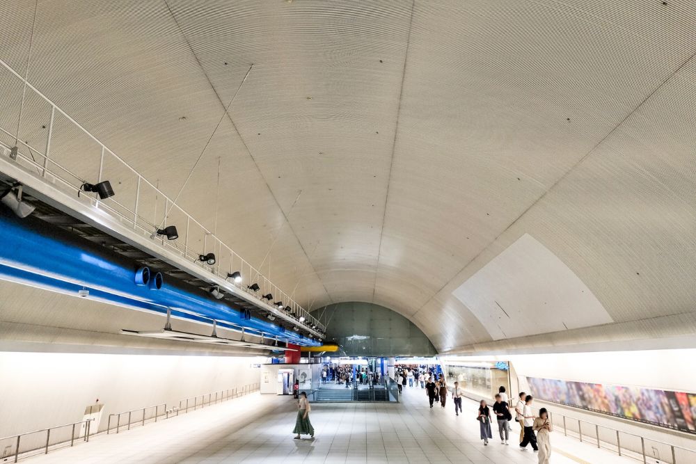 動く歩道があることで、人の流れに乗りやすく初見でも迷いにくいのがポイントです。ルートの途中で人が集まっているので、自然と方向が分かる場合も多いでしょう。